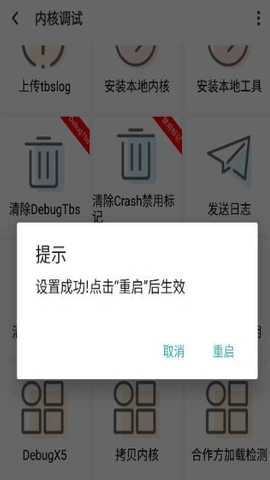 在弹出的选项中选择设置,在新页面中点击底部的内核调试。选择第三个按钮进行线上内核的安装,下载完成后重启手机,即可完成内核的配置。