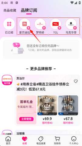 9、随后饭后“收藏”页面的“品牌订阅”,可以看到已订阅品牌所发布的动态了。