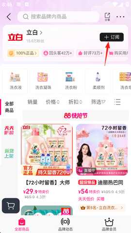 3、寻找到自己需要订阅的品牌,随后点击该品牌右下角的“+”,就可以成功订阅。