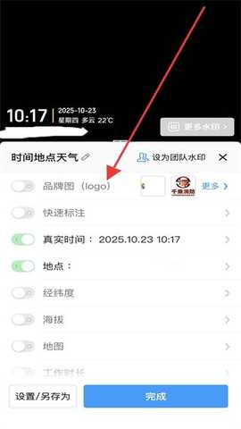 在拍照界面,点击水印设置,选择所需的水印类型和样式,可以自定义水印内容。