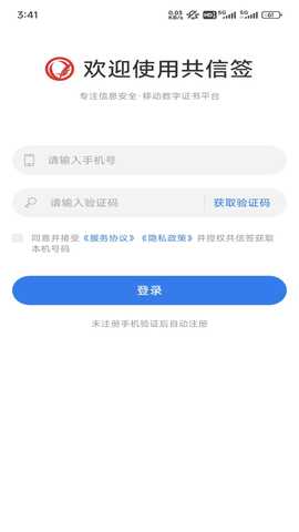 下载并安装共信签软件,打开后注册一个新账户,填写相关信息并完成身份验证。