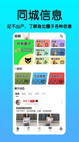 狐瞬是一款专注于信息化服务的软件,为用户提供快速便捷的本地信息获取方式。为年轻人打造了一个多元化的社交空间,还涵盖了游戏开黑、相亲、招聘等多种活动信息。商家也能通过这个平台以较低的成本获得显著的回报,促进了商业与社交的深度融合。