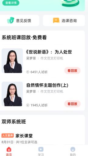 在首页中,我们既能看到系统班课,也可以自行搜索老师和课程。