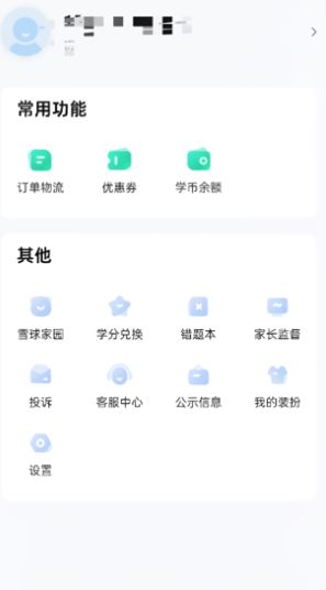 进入“我的”页面,这里有订单物流、学币余额、优惠券等常用功能。