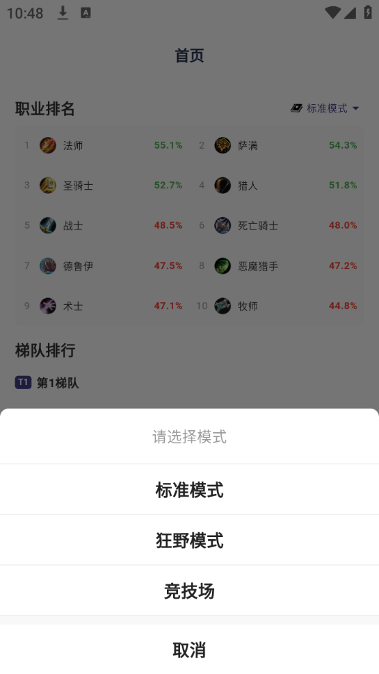 职业T级介绍功能,提供各职业的强度排名,便于选择合适的卡组。