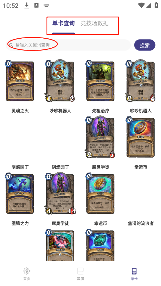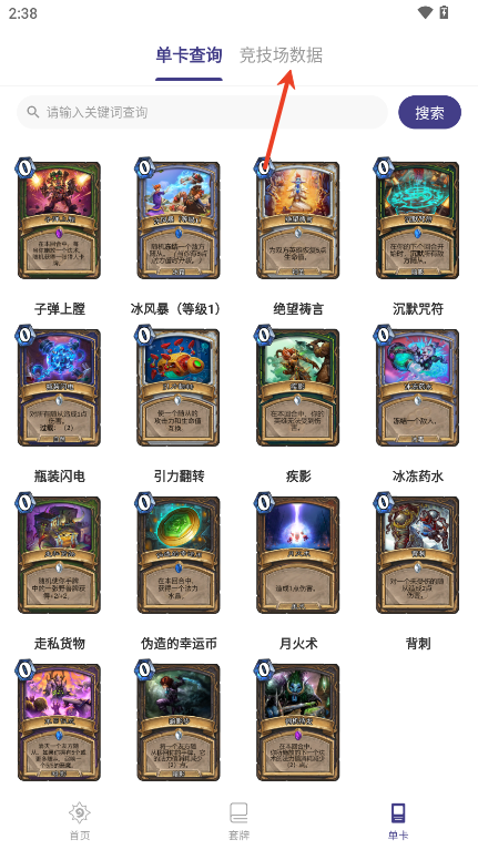 单卡查询功能允许,快速获取特定卡牌的详细信息,包括强度、用法及竞技场表现,便于制定更有效的卡组策略。