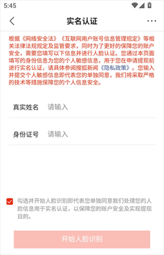 6、输入真实姓名和身份证号,然后点击“开始人脸识别”,提交等待系统审核即可。