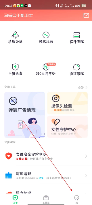 1. 启动360手机卫士,点击右下角的“我”进入个人中心界面。