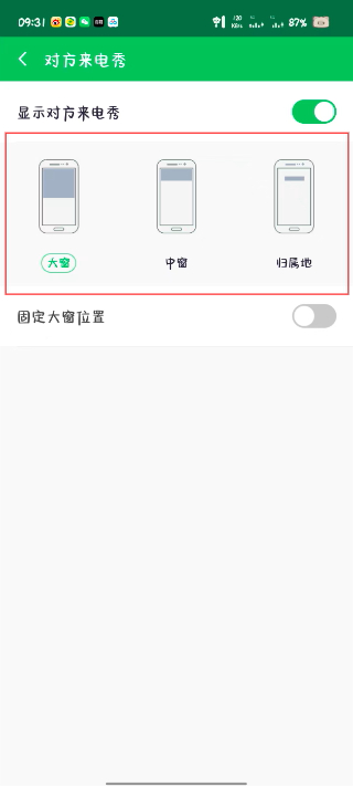 4. 根据个人喜好选择大窗模式、中窗模式或归属地样式,即可完成设置。