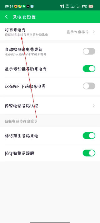 2. 找到“来电秀”功能入口,点击进入来电秀的设置页面。