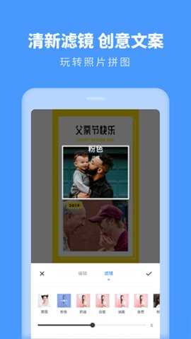软件中包含节日、美食、旅行等多种主题模板,会持续更新,用户还可以添加边框、圆角、贴纸、文字和滤镜等装饰元素,极大丰富了图片的表现形式。