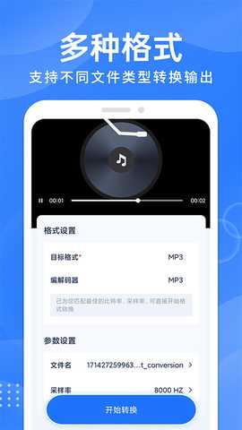 音频格式转换,能够将音频文件转换为多种格式,方便用户在不同设备上播放。