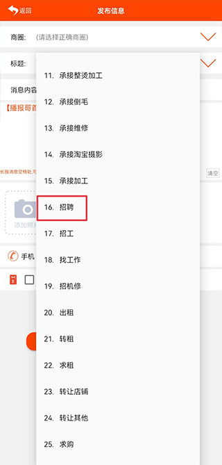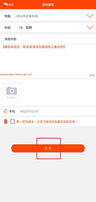 1、打开播报哥app,在招聘街界面点击右上角发布+号