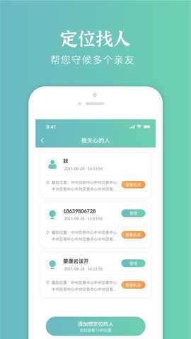 添加需要定位的联系人,您可以通过输入手机号或扫描二维码的方式进行添加。