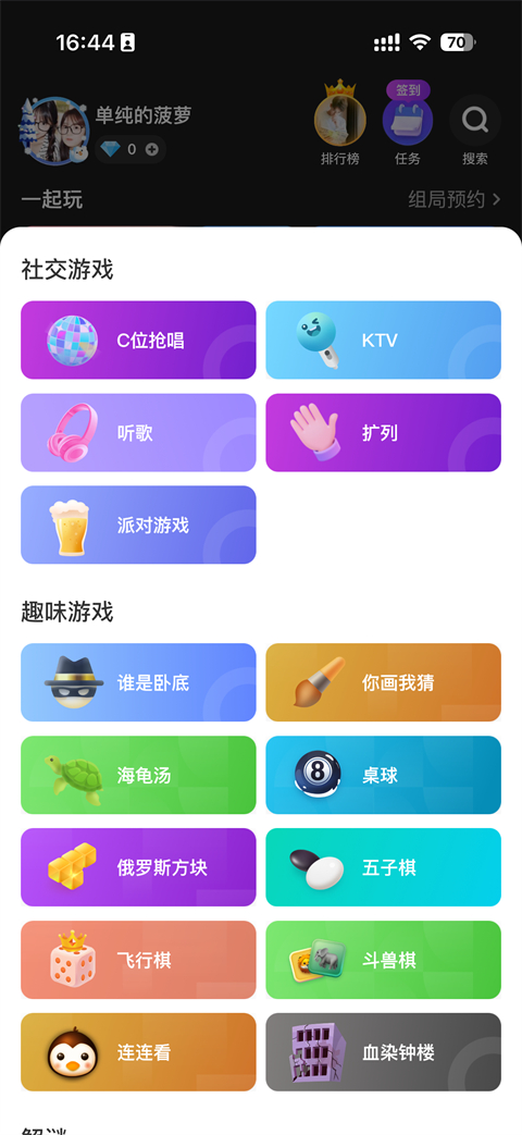内置你画我猜、谁是卧底、C位抢唱等多人互动小游戏。系统会帮你自动匹配队友或对手,不用自己张罗。边玩边聊,既有竞技的刺激,也不失社交的乐趣。