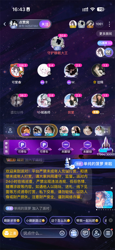 进入语音聊天房,可以选择上麦开口聊天,也可以安静当听众。碰到聊得投缘的人,可以互相关注,慢慢经营起自己的线上朋友圈。