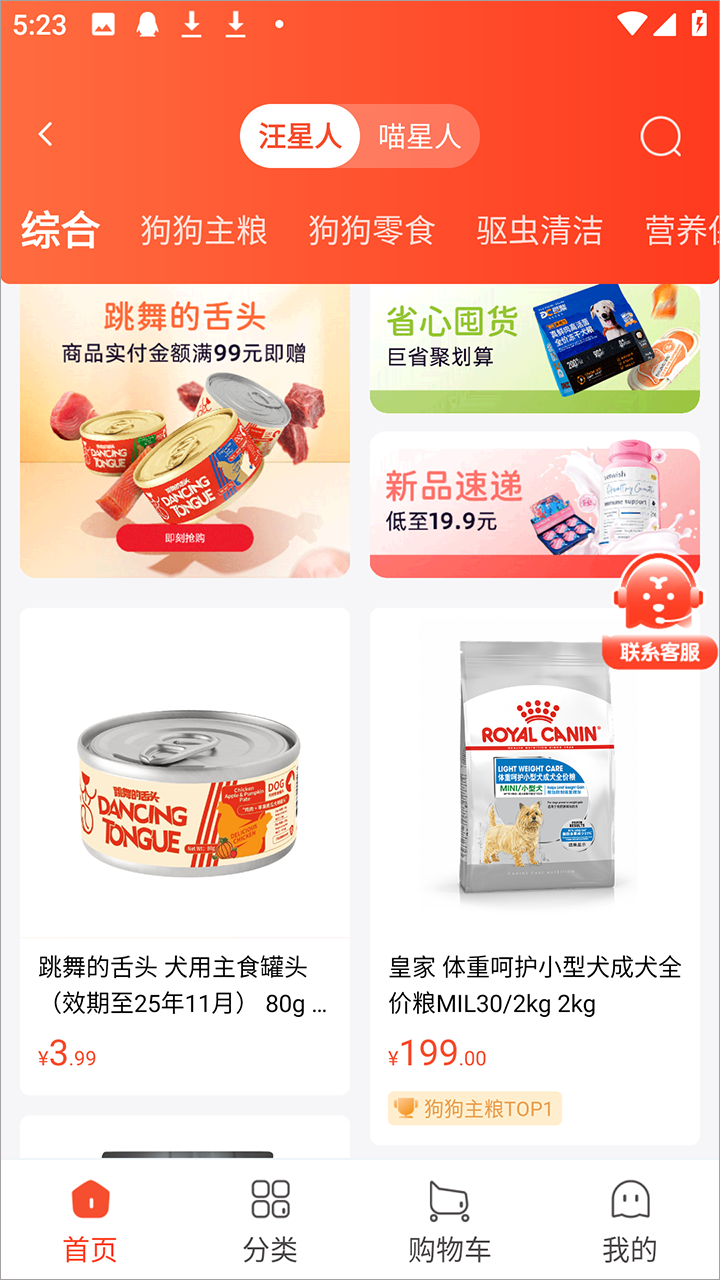 3、点击商城随后会跳转,在首页可以看到这里有各种各样的宠物零食还有玩具;