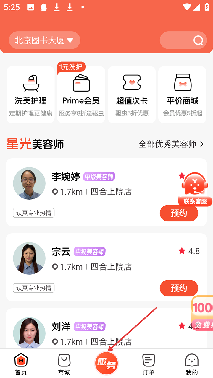 4、点击服务这里面可以预约上门给宠物洗澡等等;