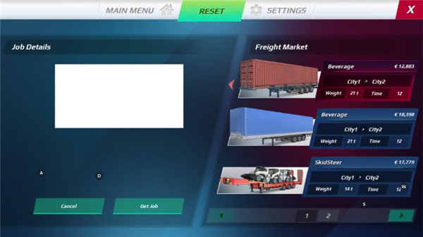 随便选择一个想拉的货物,然后点击左边的“GET JOB”按钮确认任务。