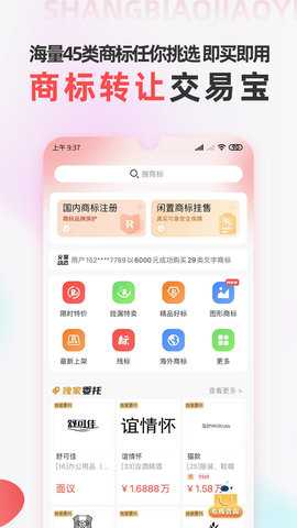 交易服务:提供安全的商标交易服务,确保每笔交易都能顺利完成,保障用户权益。