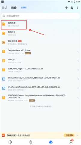 2.直接去点击底部的云盘图标。