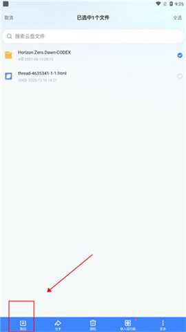 点击界面右下角的下载箭头,进入下载管理页面,查找已完成下载的压缩文件。