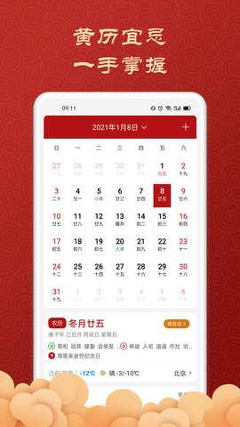 2、黄历查询:提供详细的黄历信息,包括宜忌、节气等,帮助用户选择合适的日子进行活动。