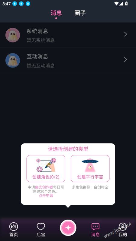 点击“后宫”选项,用户可以自主创建角色,打造出更具趣味性的专属角色。