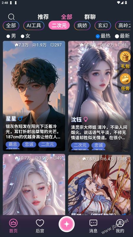 在首页中,选择自己感兴趣的AI对象,点击进入进行聊天。通过左右滑动,可以方便地切换不同的AI角色,寻找最适合自己的陪伴。