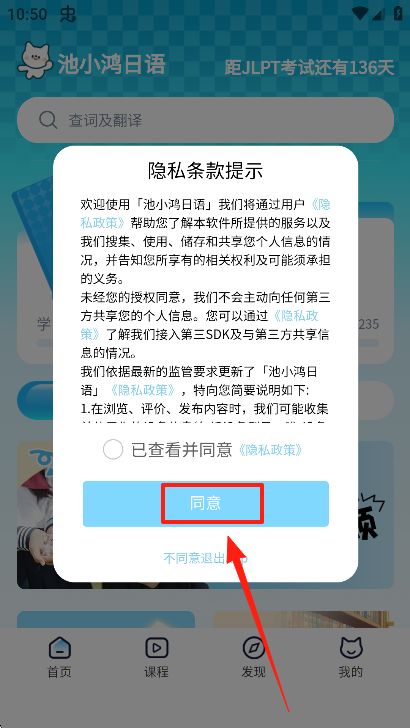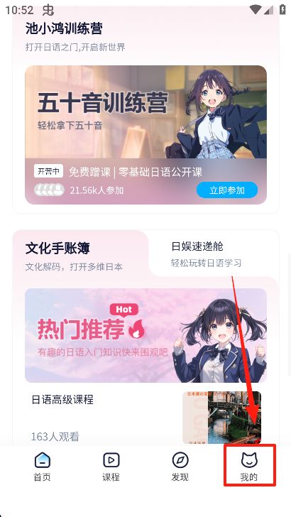 打开池小鸿日语软件,点击底部菜单栏中的“我的”。