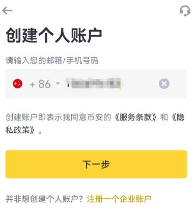 启动币安App,点击界面中的“注册”按钮开始创建个人账户。