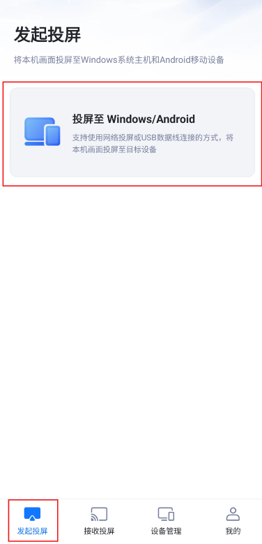 1、点击“发起投屏”,选择“投屏至Windows/Android”并打开。