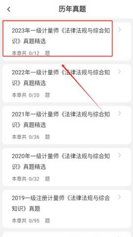 进入历年真题部分,这里汇集了最近几年的考试题目,提升答题能力和应试技巧。
