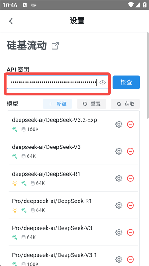 接下来,在硅基流动网站中找到API密钥入口,创建新的API密钥并复制。