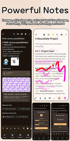 Nexus Note支持多种格式的内容,包括文本、图像、音频和视频等。在笔记中嵌入富媒体内容,确保信息的完整性和上下文的连贯性。