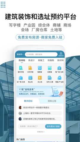 17度办公室商铺租赁装修网是一款专注于商业地产和建筑装饰领域的服务工具,帮助商家与客户之间实现高效的沟通与对接。通过,免费发布房源信息,商家能够轻松入驻,双方可以直接交流,免去中介费用,提升了信息传递的效率。无论是写字楼、办公室、商场还是厂房、仓库,17度都提供了全面的服务选项,满足不同需求的客户。