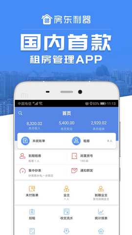 收入支出报表:提供详细的收支报表,房东可以随时查看本月、前月及年度的财务状况,帮助做出更好的决策。