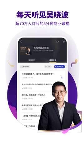 2、知名讲师团队:课程由吴晓波及其他知名人士亲自授课,确保用户获得高质量的学习体验,学习到最前沿的商业知识。