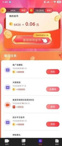 任务中心提供多种赚取金币的方式,通过完成简单的任务来获得奖励。
