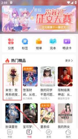3、进入书城,这里为用户提供了海量的优质小说资源,分类非常齐全,用户还可以搜索自己感兴趣的小说。