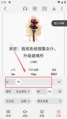 4、滑动调整字体大小,以确保舒适的阅读效果,提升体验。
