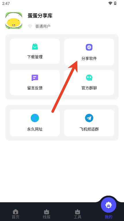 3、在个人主页,点击【分享软件】,就可以分享自己的软件了