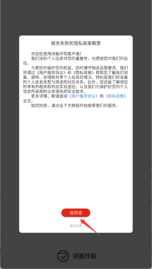 首次启动软件时,需阅读并同意使用协议与隐私政策,方可进入主界面。