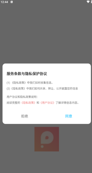 下载并安装甜蕉时光软件,打开后会出现服务条款与隐私保护协议页面,点击下方的同意按钮进入主界面。