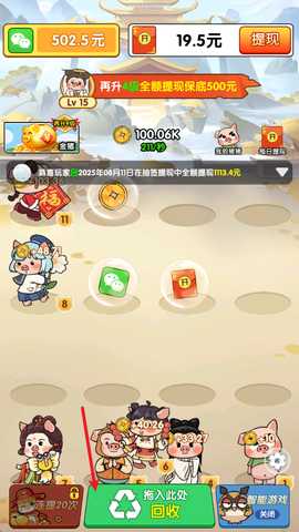 4、合成过程中,如果有卡格子的小猪,可以拖动到下方直接回收。
