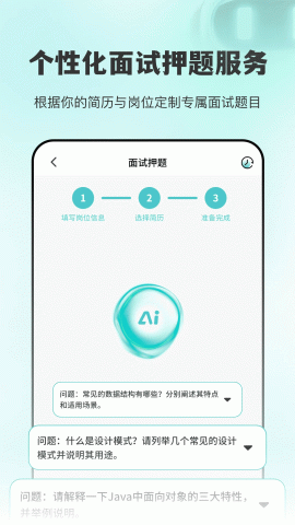 智能化面试模拟:采用先进的AI技术,提供真实的面试环境,体验到不同风格的面试官提问,帮助其熟悉面试流程。