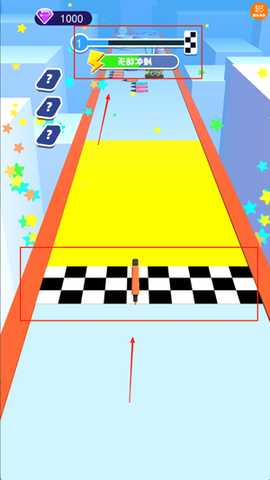 可以通过手指点击屏幕的左侧或右侧,控制水彩笔在跑道上切换,避开尖刺和断桥等障碍物,确保精准落入正确的路径平台。