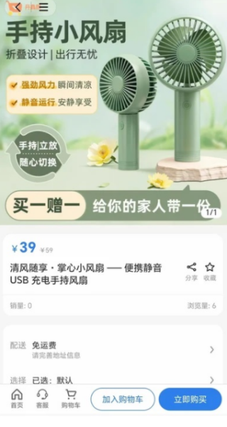 点击某一商品后,进入商品详情页,可以查看详细介绍、价格及用户评价,确认无误后,点击加入购物车或立即购买。