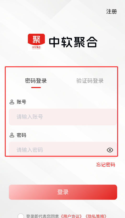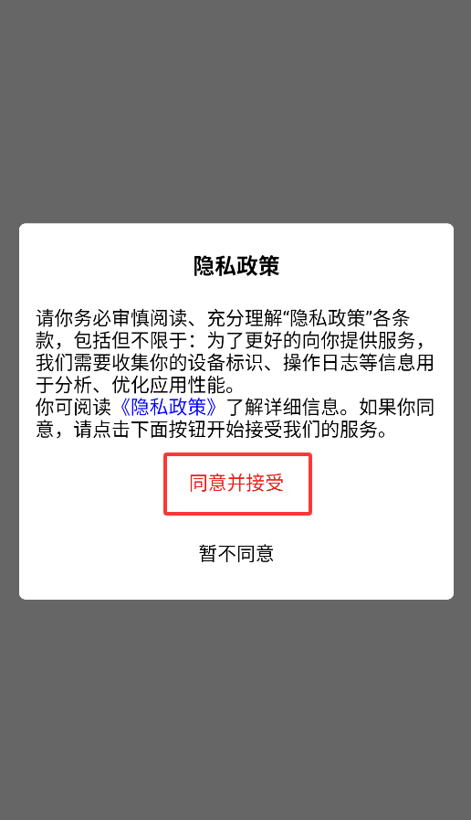 首次启动软件时,需同意服务协议才能进入登录界面。