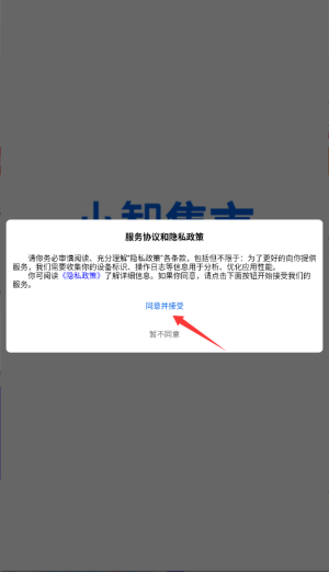 初次启动软件时,需点击同意用户协议与隐私政策后才能继续使用。